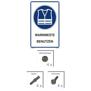 Gebotsschild - Warnweste tragen (40x60 cm gelocht & Kit)