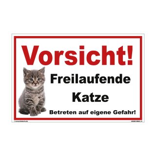 - 🖼️ Design: Klares Warnschild mit rotem Rahmen und süßem Katzenmotiv.