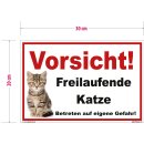 Das Katzenschild – Vorsicht Freilaufende Katze! von Kleberio ist die perfekte Lösung, um Besucher, Nachbarn und Lieferanten auf Ihre freilaufende Katze aufmerksam zu machen. Das auffällige Warnschild überzeugt durch sein markantes Design mit rotem Rahmen, großer Schrift und einem niedlichen Katzenmotiv. Damit ist die Botschaft unübersehbar: Hier lebt eine Katze, die sich frei bewegt – Betreten auf eigene Gefahr!