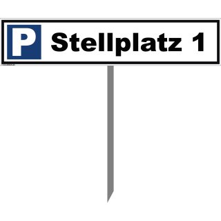 Stellplatz 1 Parkplatzschild 52x11cm Pfosten 75 cm
