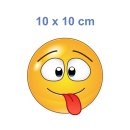 Schielt mit rausgestreckter Zunge – Smile Aufkleber für jede Gelegenheit (10 x 10 cm)
