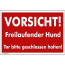 Vorsicht freilaufender Hund Schild 40x60 cm - Tor geschlossen halten - Ausgefüllt
