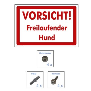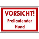 Vorsicht freilaufender Hund Schild 20x30 cm gelocht & Kit