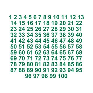 Selbstklebende fortlaufende Klebezahlen Zahlenaufkleber Aufkleber Zahlen wetterfest: 1 bis 100 (13 cm hoch, in grün)