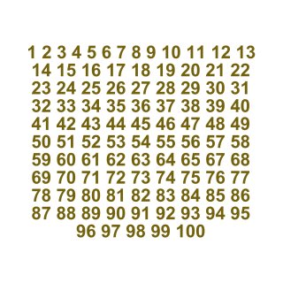 Selbstklebende fortlaufende Klebezahlen Zahlenaufkleber Aufkleber Zahlen wetterfest: 1 bis 100 (6 cm hoch, in gold)