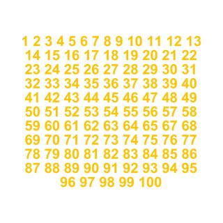 Selbstklebende fortlaufende Klebezahlen Zahlenaufkleber Aufkleber Zahlen wetterfest: 1 bis 100 (7 cm hoch, in gelb)