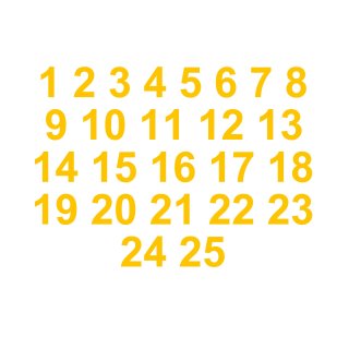 Selbstklebende fortlaufende Klebezahlen Zahlenaufkleber Aufkleber Zahlen wetterfest: 1 bis 25 (11 cm hoch, in gelb)