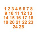 Selbstklebende fortlaufende Klebezahlen Zahlenaufkleber Aufkleber Zahlen wetterfest: 1 bis 25 (6 cm hoch, in orange)