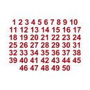 Selbstklebende fortlaufende Klebezahlen Zahlenaufkleber Aufkleber Zahlen wetterfest: 1 bis 50 (10 cm hoch, in rot)
