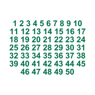 Selbstklebende fortlaufende Klebezahlen Zahlenaufkleber Aufkleber Zahlen wetterfest: 1 bis 50 (12 cm hoch, in grün)