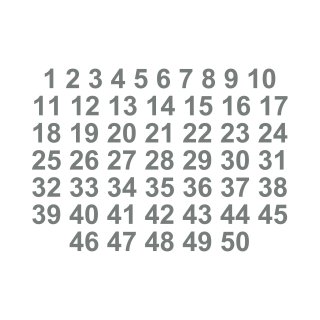 Selbstklebende fortlaufende Klebezahlen Zahlenaufkleber Aufkleber Zahlen wetterfest: 1 bis 50 (3 cm hoch, in grau)