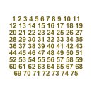 Selbstklebende fortlaufende Klebezahlen Zahlenaufkleber Aufkleber Zahlen wetterfest: 1 bis 75 (1 cm hoch, in gold)