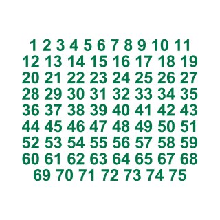 Selbstklebende fortlaufende Klebezahlen Zahlenaufkleber Aufkleber Zahlen wetterfest: 1 bis 75 (15 cm hoch, in grün)