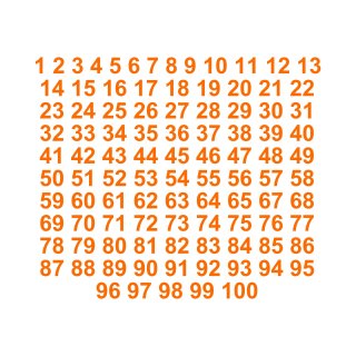 Selbstklebende fortlaufende Klebezahlen Zahlenaufkleber Aufkleber Zahlen wetterfest: 1 bis 100 (1 cm hoch, in orange)
