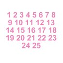 Selbstklebende fortlaufende Klebezahlen Zahlenaufkleber Aufkleber Zahlen wetterfest: 1 bis 25 (16 cm hoch, in rosa)