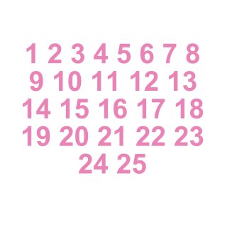 Selbstklebende fortlaufende Klebezahlen Zahlenaufkleber Aufkleber Zahlen wetterfest: 1 bis 25 (9 cm hoch, in rosa)