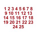 Selbstklebende fortlaufende Klebezahlen Zahlenaufkleber Aufkleber Zahlen wetterfest: 1 bis 25 (4 cm hoch, in rot)