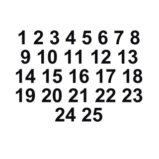 Selbstklebende fortlaufende Klebezahlen Zahlenaufkleber Aufkleber Zahlen wetterfest: 1 bis 25 (13 cm hoch, in schwarz)