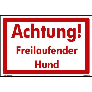 Achtung freilaufender Hund Schild 20x30 cm gelocht
