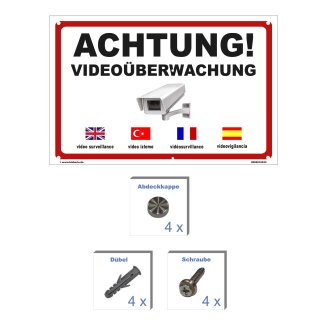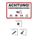 Achtung! Videoüberwacht - Videoüberwachung Schild 20x30 cm gelocht & Kit