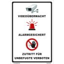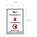 Videoüberwacht, Alarmgesichert, Zutritt für Unbefugte verboten - Videoüberwachung Schild 40x60 cm