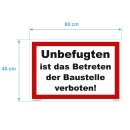 Mit dem Baustellenschild „Betreten verboten“ setzen Sie ein deutliches Zeichen zur Gefahrenvermeidung auf Ihrem Gelände. Die gut sichtbare Beschriftung auf kontrastreichem Hintergrund sorgt für Aufmerksamkeit und vermittelt klar: Unbefugtes Betreten ist untersagt!