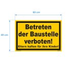 Baustellenschild - Betreten verboten Eltern haften für Kinder (40x60 cm)