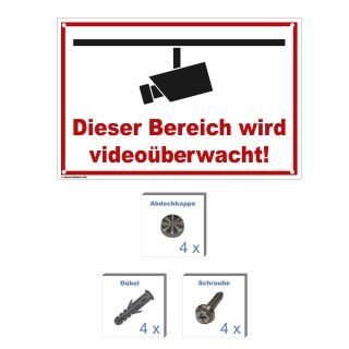 Bereich - Videoüberwachung Schild 30x45 cm gelocht & Kit