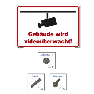 Gebäude - Videoüberwachung Schild 30x45 cm gelocht & Kit