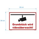 Grundstück - Videoüberwachung Schild 20x30 cm gelocht