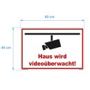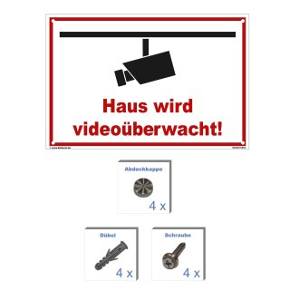 Haus - Videoüberwachung Schild 40x60 cm gelocht & Kit