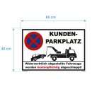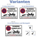 Hochwertiges Parkplatzschild 'Kundenparkplatz Parken verboten' mit Bohrlöchern und Montage-Kit
