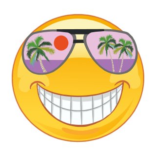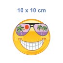 Smile Aufkleber – Lachend mit lila Sonnenbrille, wetterfest & stylisch (10 x 10 cm)