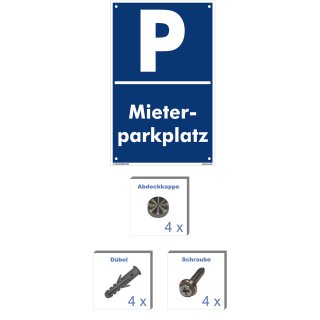 Mieterparkplatz Hinweis Parkplatzschild 30x45 cm gelocht & Kit