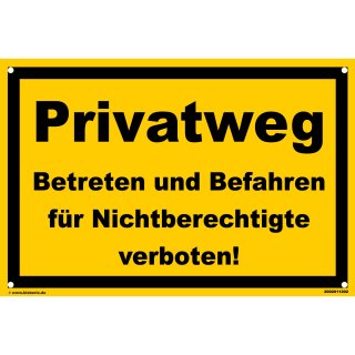 Privatweg Schild – Betreten und Befahren verboten (30x45 cm gelocht)
