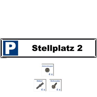 Stellplatz 2 Parkplatzschild 52x11cm gelocht & Kit