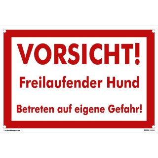Vorsicht freilaufender Hund Schild - Betreten auf eigene Gefahr