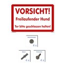 Vorsicht freilaufender Hund Schild - Tor geschlossen halten