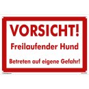Vorsicht freilaufender Hund Schild - Betreten auf eigene Gefahr