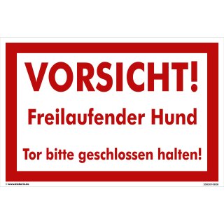 Vorsicht freilaufender Hund Schild - Tor geschlossen halten